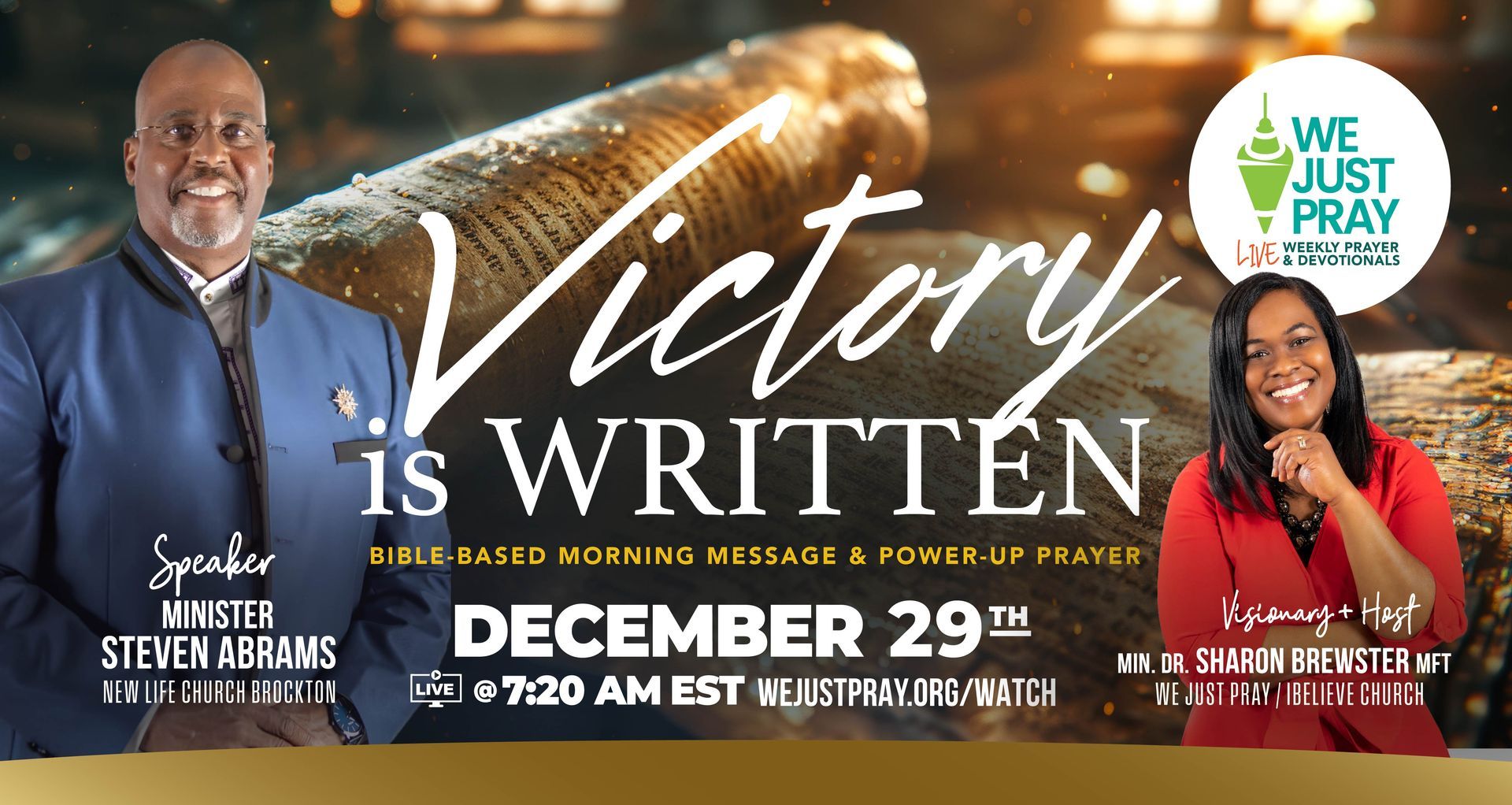 Thank you and welcome to We Just Pray. You'll receive a reminder email and/or text leading up to our next devotional or event. The next step in staying connected is to join our Facebook Group at: www.facebook.com/groups/wejustpray